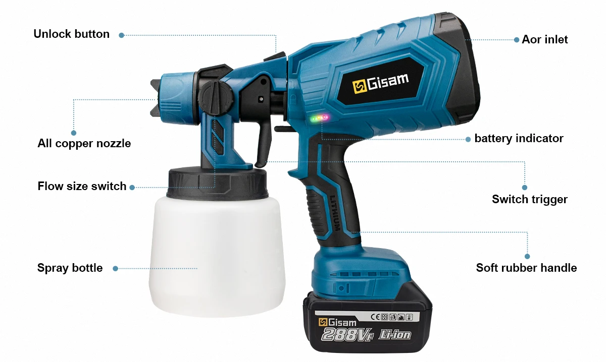 Fácil de usar e lavar - Este pulverizador de tinta é fácil de usar, fácil de montar e fácil pulverização. Com acessórios de limpeza embalados, você pode limpá-lo com facilidade e eficiência
